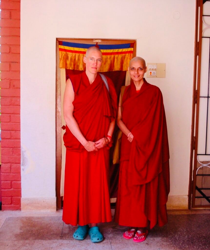 Just then I saw a tall white girl coming down the spiral staircase, her head freshly tonsured. I walked towards her introduced myself and told her my dilemma.. Connie looked at me with a twinkle in her eyes and with a reassuring smile she said I have a spare set of winter robes you can wear them for the ceremony.